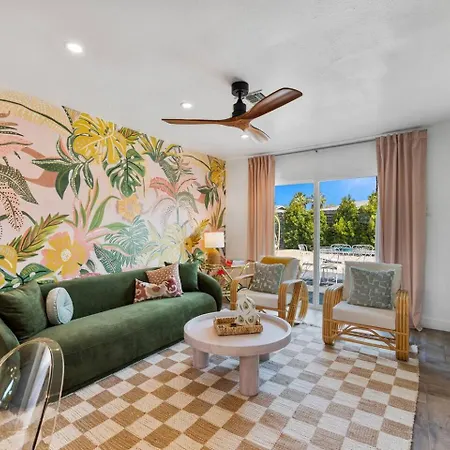 Offering a Jacuzzi for a relaxing experience, Whimsical Oasis Retreat 4 Bach And Bday Celebrations is located at a distance of 6 km from Palm Springs Walk of Stars Sidewalk Plaques.